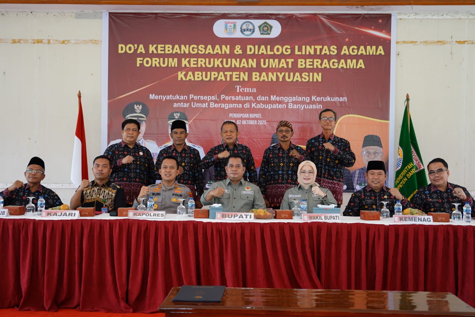 Banyuasin, Kirkanews - Bupati Banyuasin Dr. H. Askolani, SH.,MH bersama Wakil Bupati Banyuasin Netta Indian, SP mengikuti Dialog Lintas Agama diselenggarakan oleh Forum Kerukunan Umat Beragama (FKUB) Tahun 2025, mengusung tema “Menyatukan Persepsi, Persatuan, dan Menggalang Kerukunan antar umat beragama di Kabupaten Banyuasin” berlangsung di Pendopoan Rumah Dinas Bupati Banyuasin, Kamis (2/10).